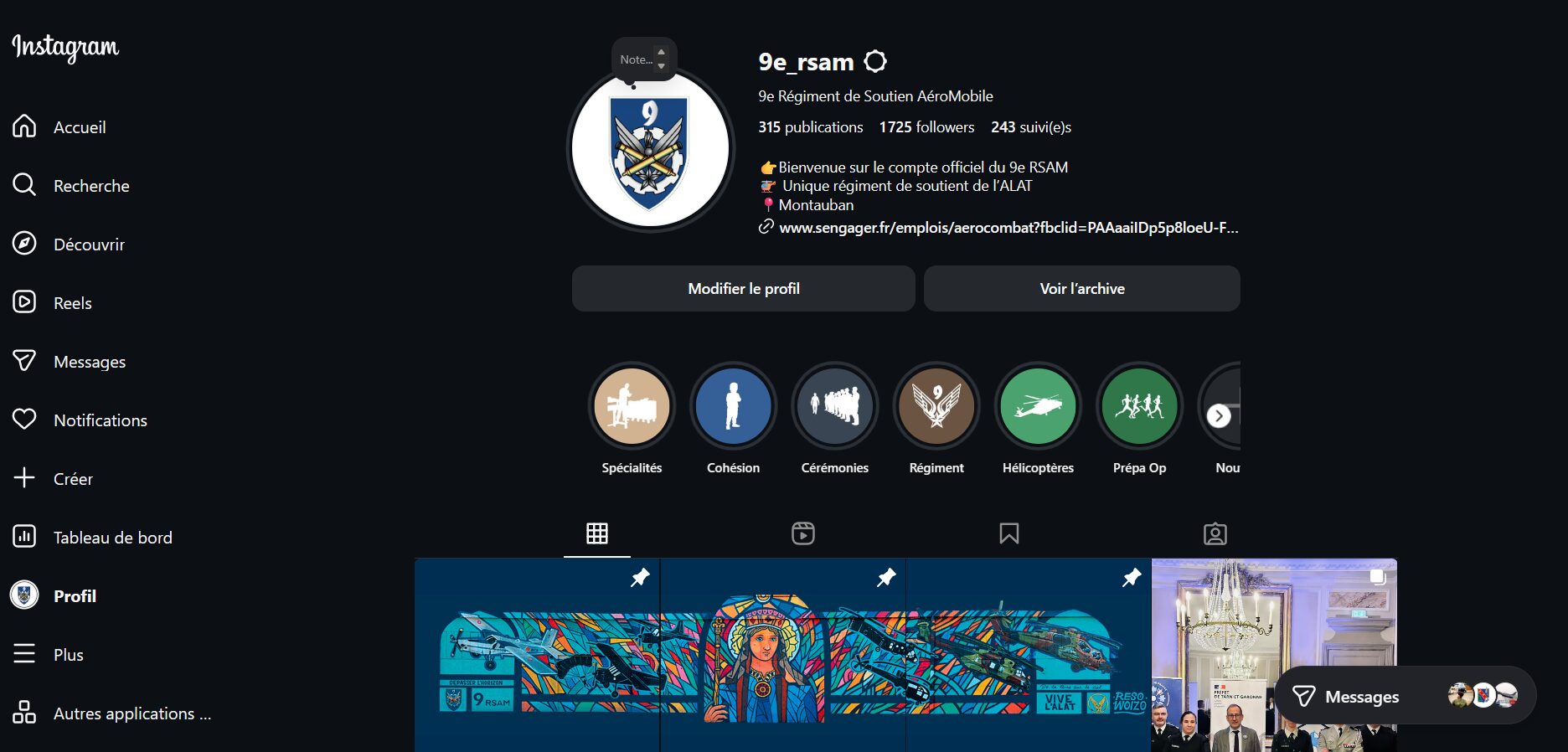 Gestion des réseaux sociaux Facebook et Instagram du 9e RSAM, avec la création de visuels destinés à la communication digitale et à l’impression.